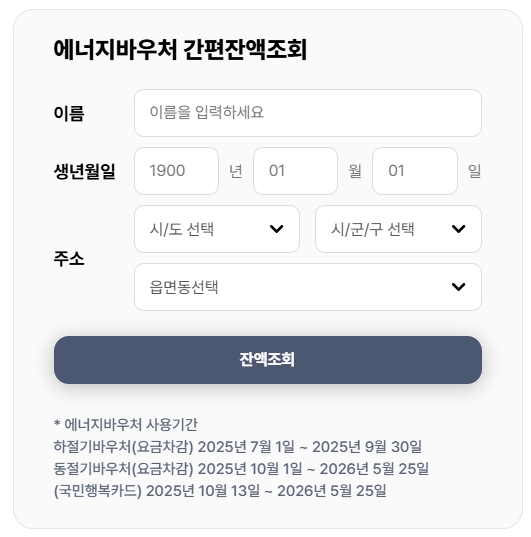 겨울 바우처 2025년 10월 1일 ~ 2026년 4월 30일