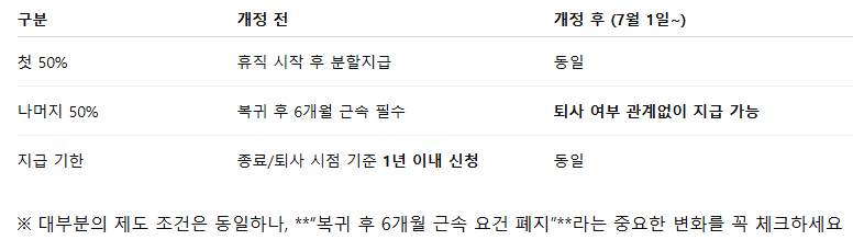 ✅ 이것은 중소기업 입장에서 인력 공백 시 복귀 가능 여부를 떠나 재정적 부담 없이 지원금을 받을 수 있도록 개선된 것입니다.